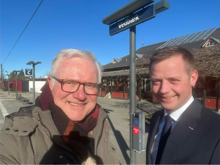 Billedet er fra 26. februar 2023, hvor den nuværende Transportminister, Thomas Danielsen, personligt kom forbi Vedbæk, hvor han kunne oplyse mig, at bønner og ønsker, fra gruppen af passagerer på de sydlige stationer var blevet hørt. Senere samme år overgik Kystbanen fra halvtimesdrift på de sydlige stationer til at alle stationer fik kvartersdrift 🙏💪 Det må vi ikke sætte over styr igen